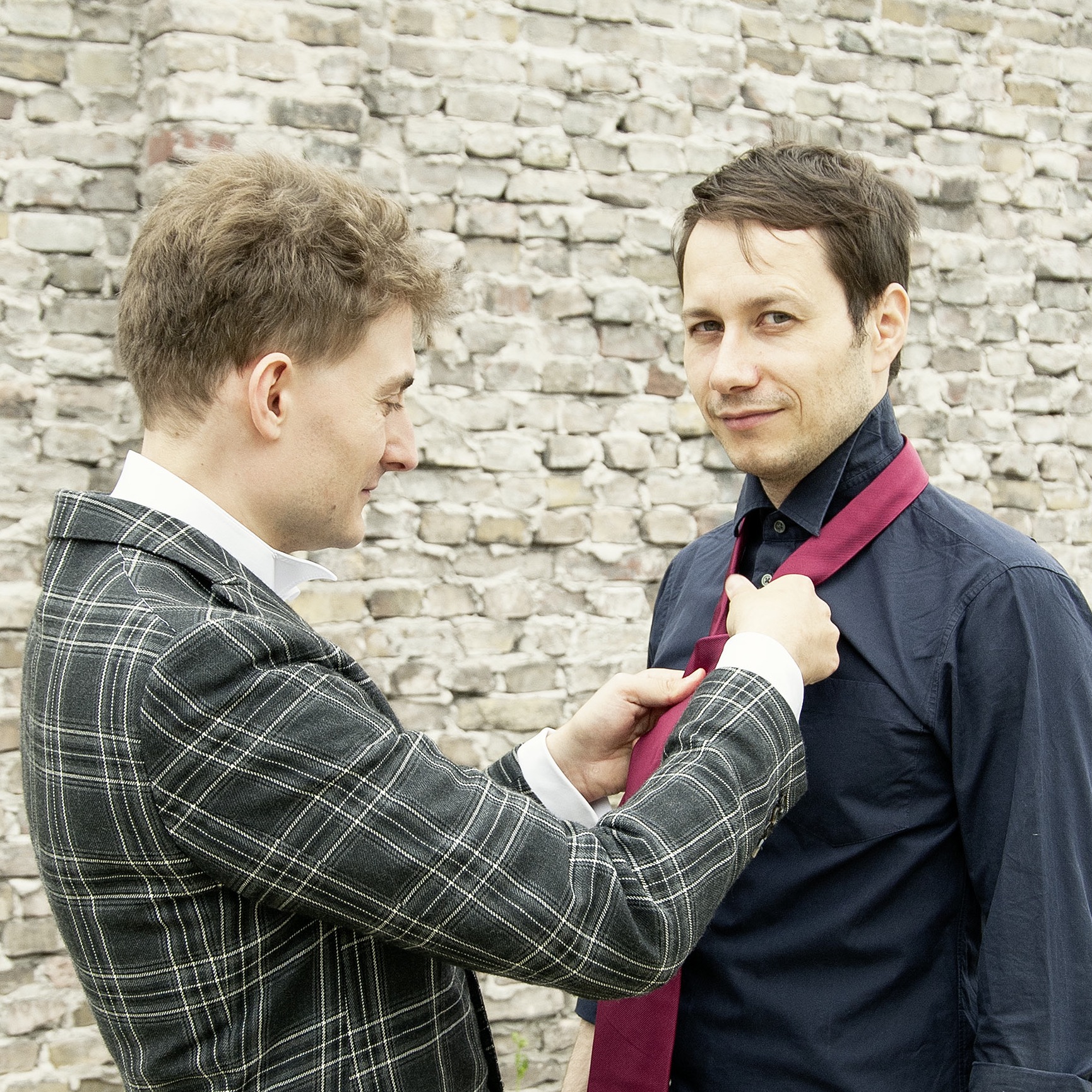 Sebastian Krämer trägt Schlips und Weste, Marco Tschirpke ein saloppes T-Shirt. Ganz unterschiedlich ist auch die Machart ihrer Lieder. Krämer gibt Geschichten Raum, Tschirpke läßt Gedanken kurz aufleuchten wie Blitze. Seit 2003 gönnen sich beide das Vergnügen, ihre Gegensätzlichkeit nicht nur in Soloabenden, sondern auch in gemeinsamen Auftritten auszuleben. Die benennen schon im Titel das naheliegende dramaturgische Konzept: "Ich 'n Lied - du 'n Lied".